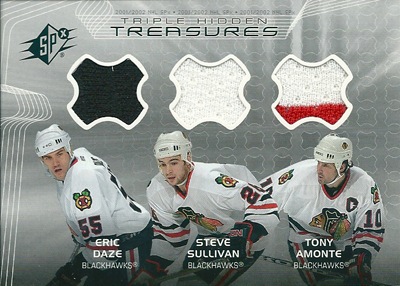 エリック・ダーゼ / スティーブ・サリヴァン / トニー・アモンテ NHLカード Eric Daze / Steve Sullivan / Tony Amonte 2001/02 SPx Triple Hidden Treasures