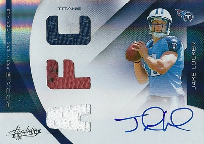 ジェイク・ロッカー NFLカード Jake Locker 2011 Absolute Memorabilia Rookie Premier Materials Autographs AFC 38/49