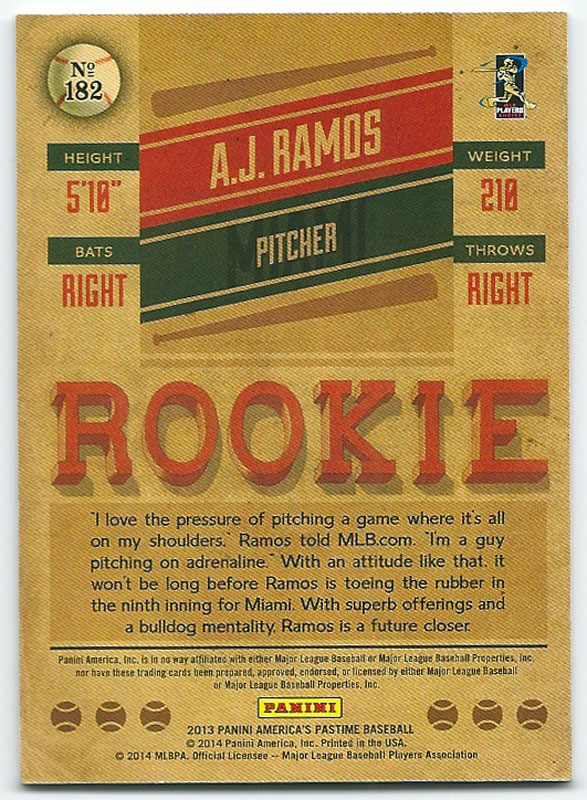 A.J.ラモス 2013 America's Pastime Rookies A.J. Ramos 092/125
