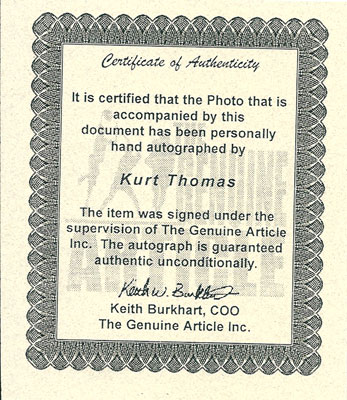 カート・トーマス 直筆サイン入り8x10フォト (ヒート) / Kurt Thomas
