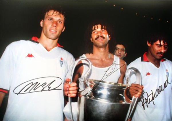マルコ・ファン・バステン/ルート・フリット/フランク・ライカールト ACミラン 直筆サイン入りフォト 1990 チャンピオンズリーグ ウィナー (1990 UEFA Champions League Winners)