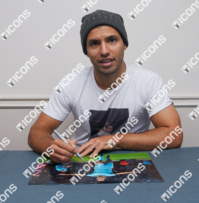 セルヒオ・アグエロ 直筆サインフォト マンチェスター・シティ チャンピオンズリーグ ゴール vs バイエルン・ミュンヘン (Sergio Aguero Signed Manchester City Photo: Bayern Munich Hat-Trick)