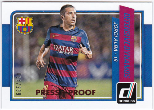 ジョルディ・アルバ 2015 Panini Donruss Defensive Dynamos Bronze Press Proof 034/299 Jordi Alba