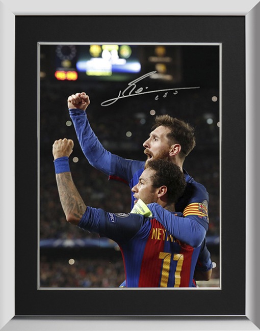 リオネル・メッシ 直筆サインフォト 額装 FC バルセロナ セレブレーション ネイマール (Lionel Messi Official Signed Barcelona Photo: Celebration with Neymar Jr vs PSG