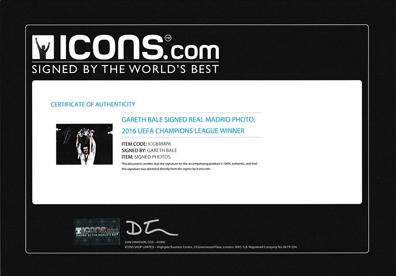 ガレス・ベイル 直筆サインフォト 額装 Gareth Bale Signed Real Madrid Photo: 2016 UEFA Champions League Winner!!通常サイズ