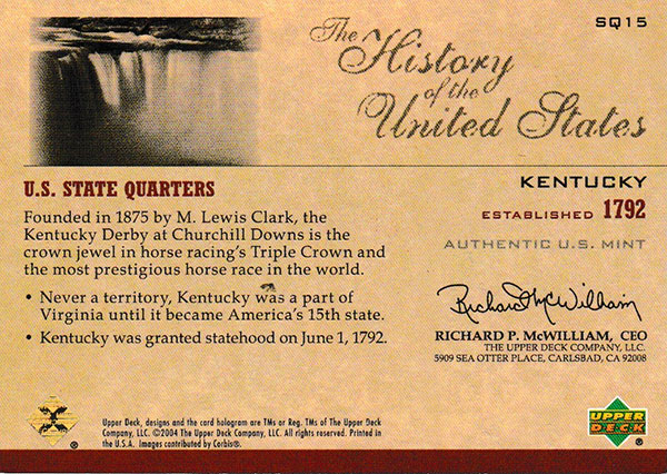 ケンタッキー 2004 UD The History of the United States Coin Card Kentucky State Quarter