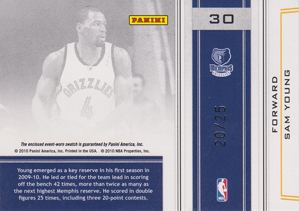 サム・ヤング NBAカード 2019-10 National Treasures Colossal Materials (20/25) / Sam Young