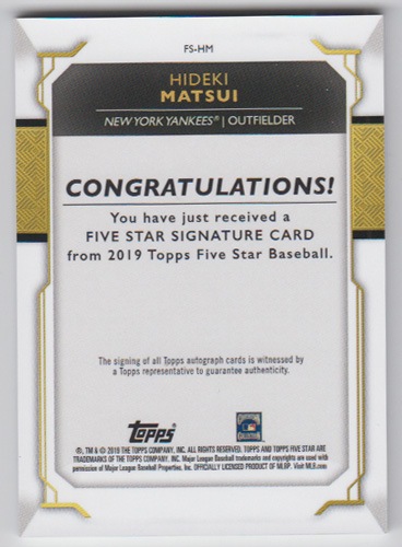 松井秀喜 MLBカード 2019 Topps Five Star Signatures Autograph 13/20