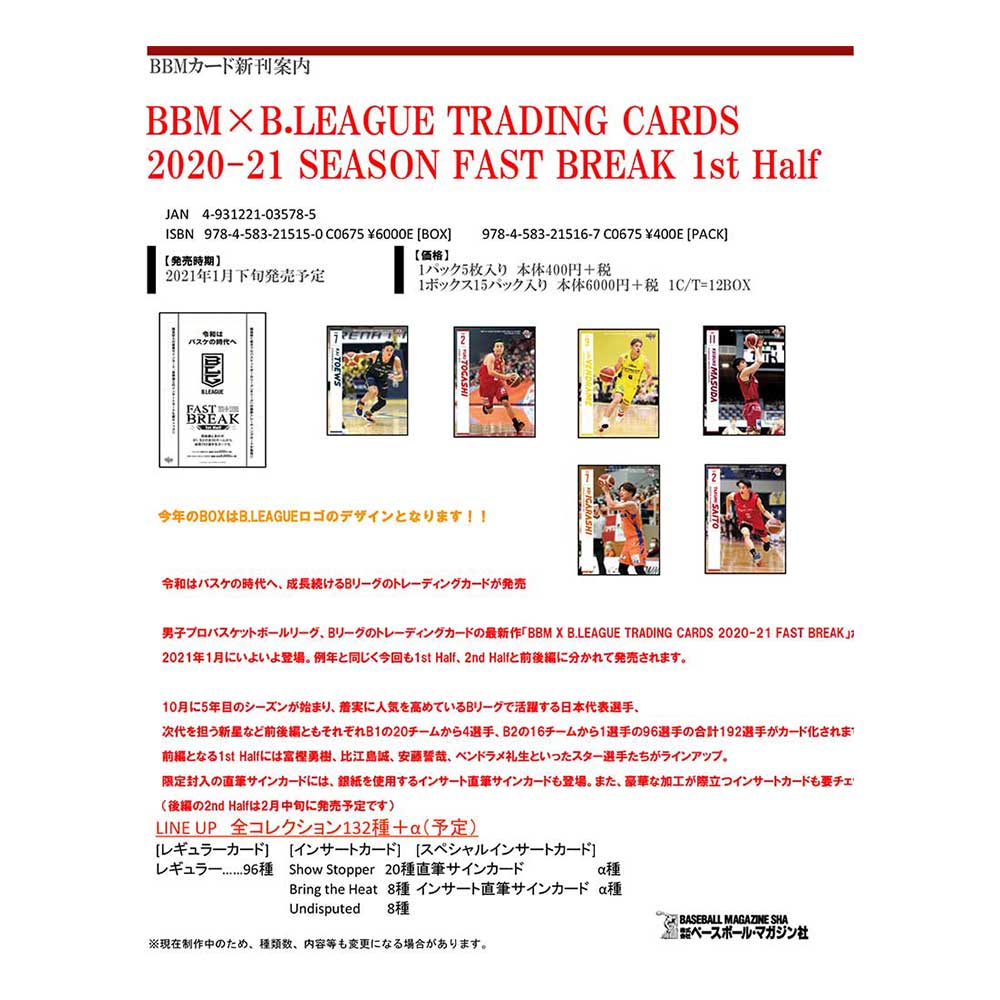 BBM×B.LEAGUE トレーディングカード2020-21 SEASON FAST BREAK 1st Half 送料無料、1/27入荷!