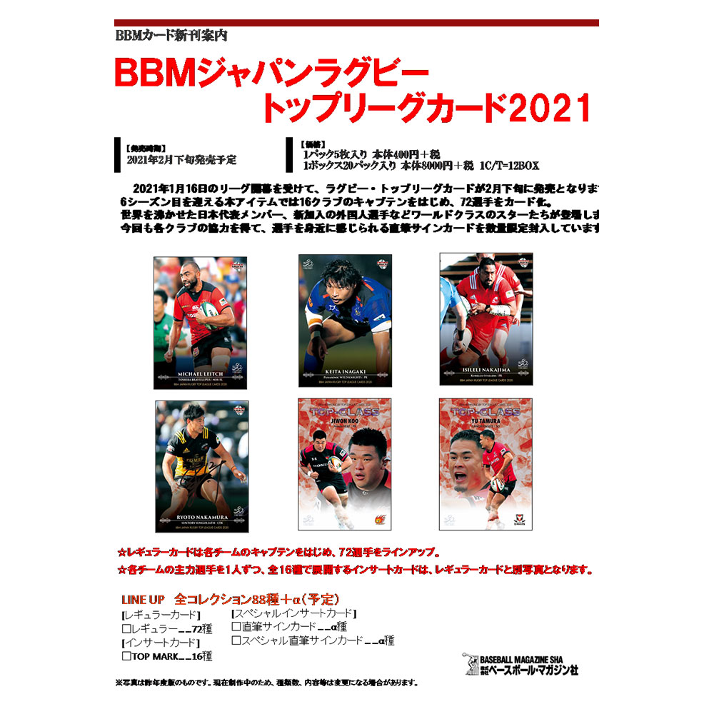 BBM ジャパンラグビートップリーグカード2021、送料無料 2/25入荷!