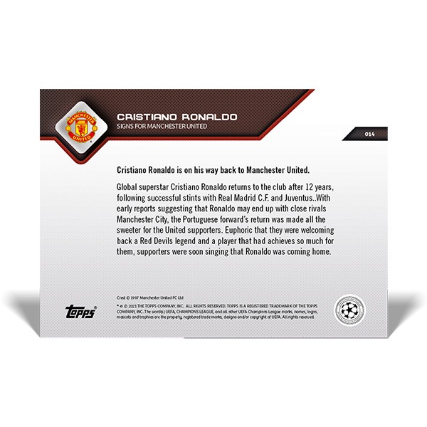 クリスティアーノ・ロナウド #014 クリスティアーノ・ロナウド選手がマンチェスター・ユナイテッドと契約した記念カード Signs for Manchester United Cristiano Ronaldo 2021 Topps Now Card 10/13入荷