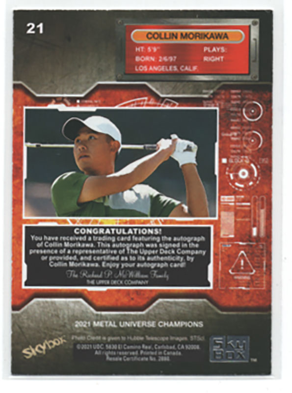 Collin Morikawa 2021 Skybox Metal Universe Champions Base Auto