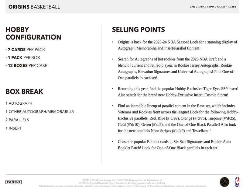 NBA 2023-24 Panini Origins Basketball Hobby 4/13入荷