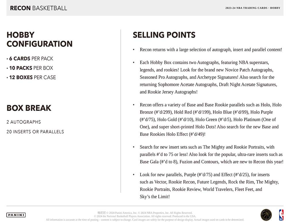 NBA 2023-24 Panini Recon Basketball Box 5/2入荷