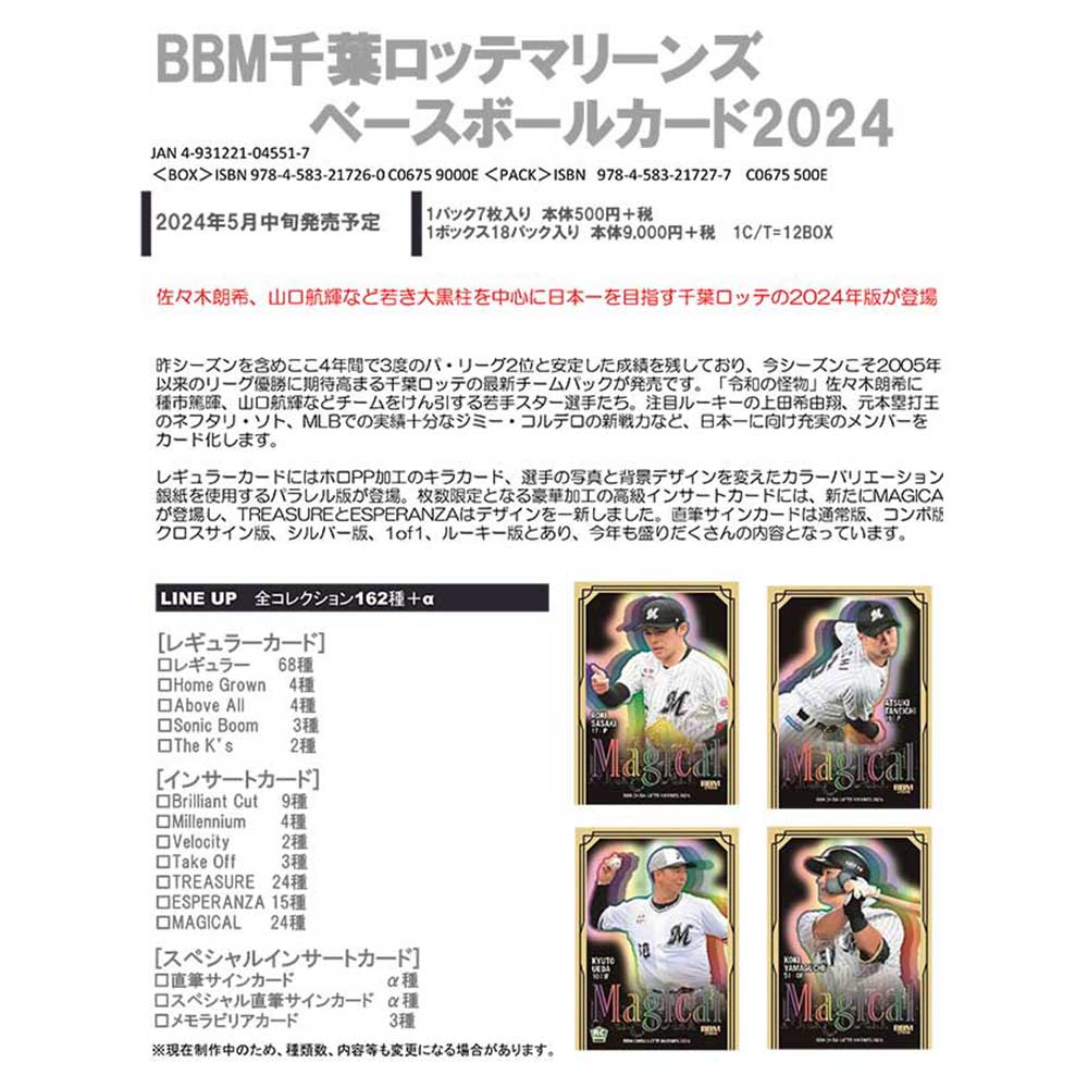 BBM 千葉ロッテマリーンズ ベースボールカード 2024 Box 送料無料 5/18発売!