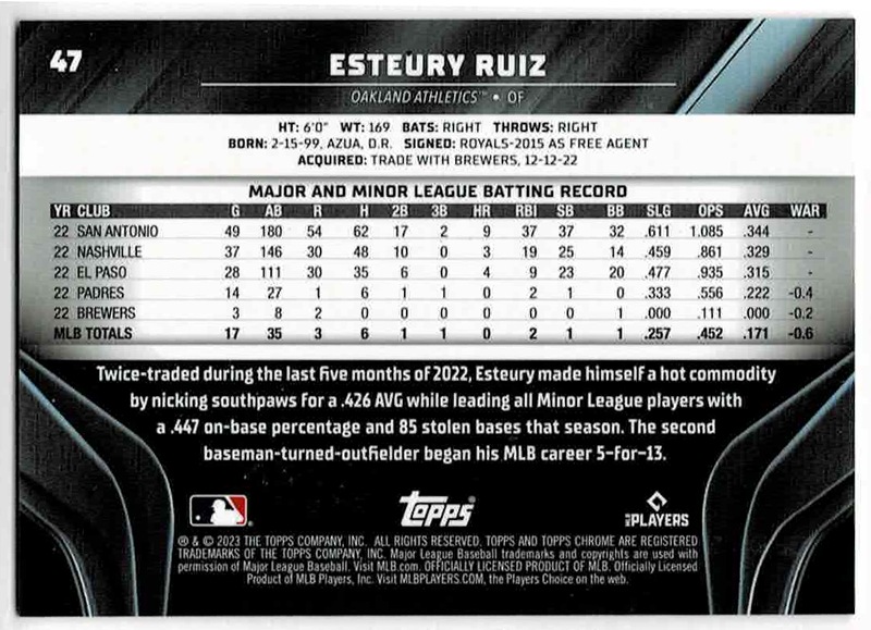 エステウリー・ルイーズ/Esteury Ruiz 2023 Topps Chrome Black Rookie Card Purple Mini-Diamond Refractors 150枚限定