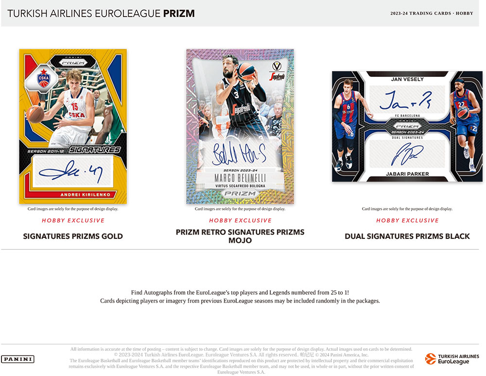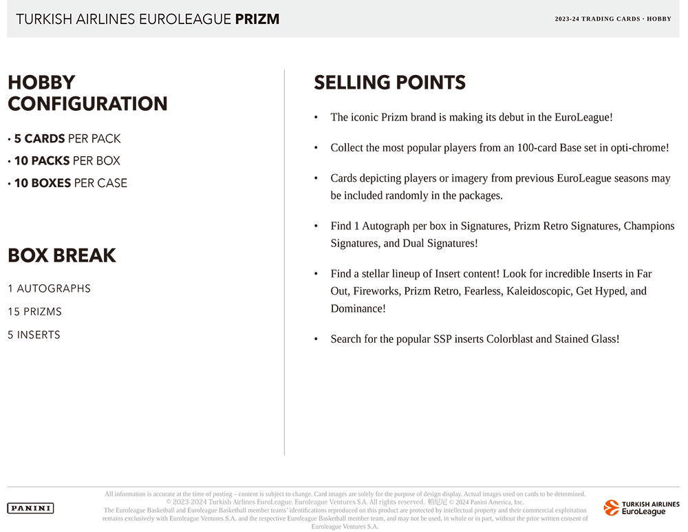 ★パニーニ社のキラキラ美しく輝くプリズムパラレルが人気のバスケットボールカードシリーズのユーロリーグ版 『2023-24 Panini Prizm Turkish Airlines EuroLeague Basketball』のHobby版が発売されます!