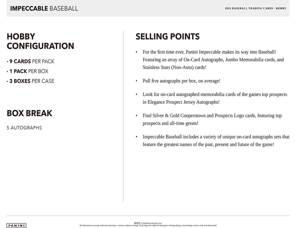 MLB 2024 Panini Impeccable Baseball Hobby Box 11/14入荷