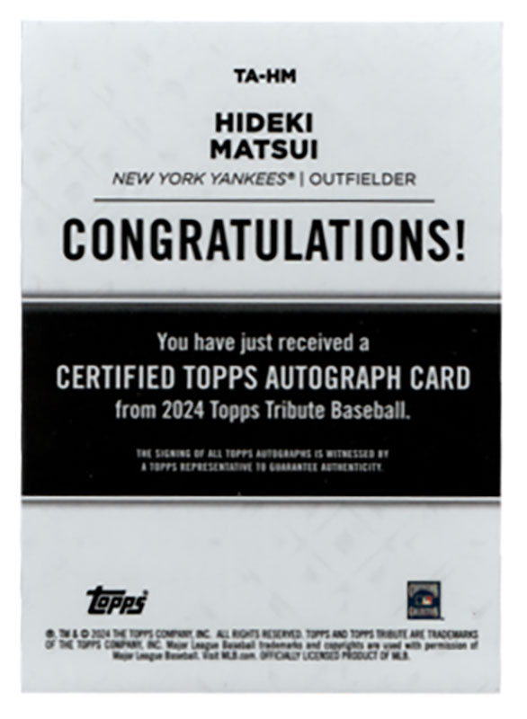 松井秀喜 2024 Topps Tribute auto 08/50