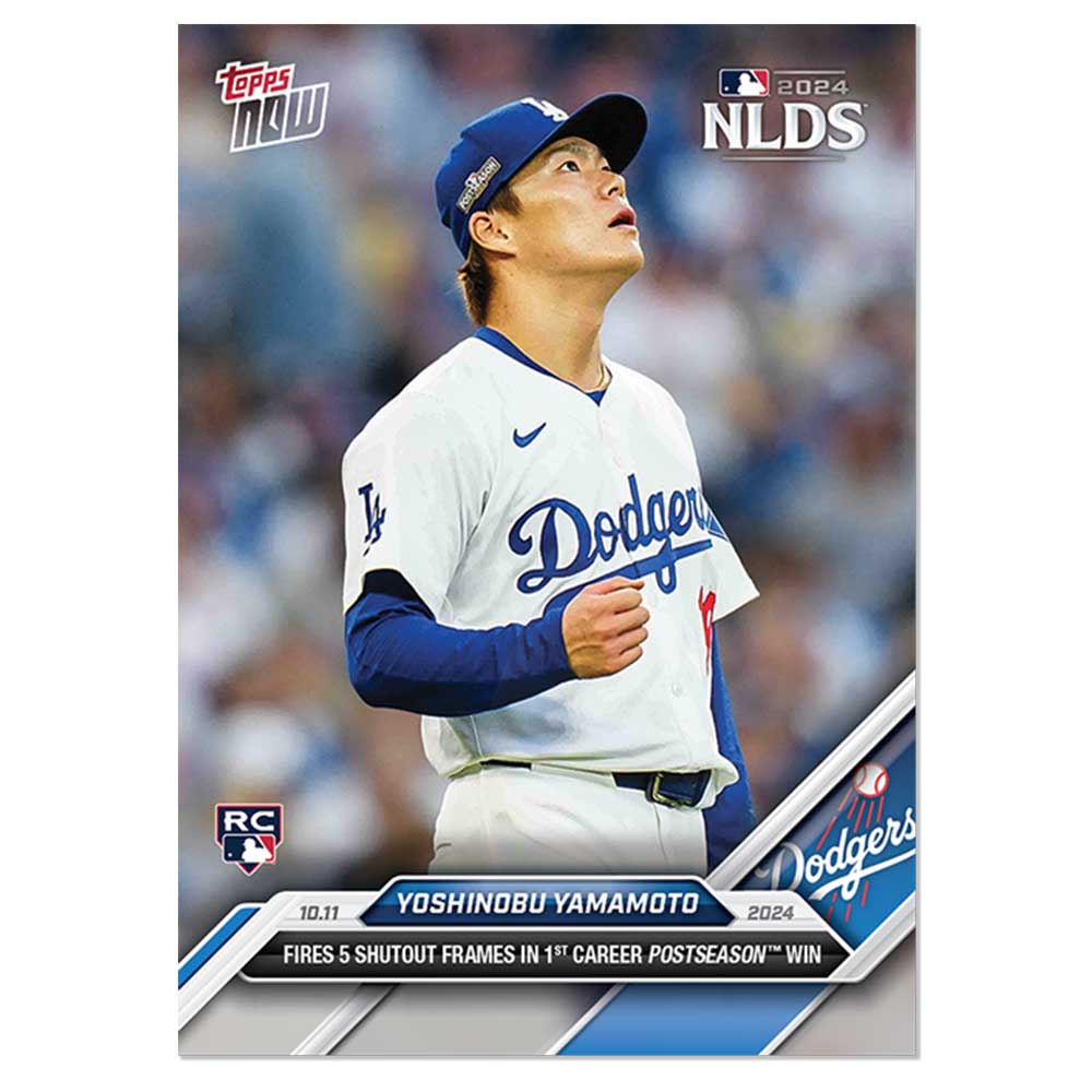 山本由伸 #826 5回無失点でポストシーズン初勝利を記念したカード- Fires 5 Shutout Frames in 1st Career Postseason Win - Yoshinobu Yamamoto 2024 Topps Now Card 11/28入荷