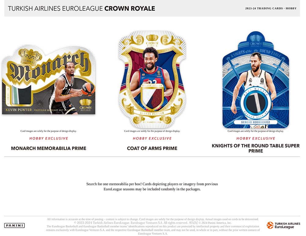 ★パニーニ社の人気バスケットボールシリーズCrown Royaleのユーロリーグ版 『2023-24 Panini Turkish Airlines EuroLeague Crown Royale 』のHobby版が発売されます!
