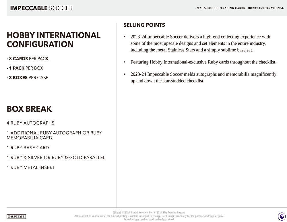 2023-24 Panini Impeccable Premier League Soccer Hobby International 3-Box case