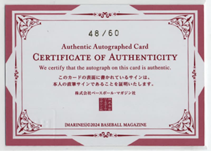 C.C.メルセデス【BBM2024千葉ロッテマリーンズ 】直筆サインカード 48/60