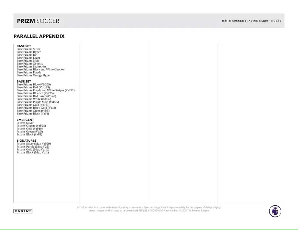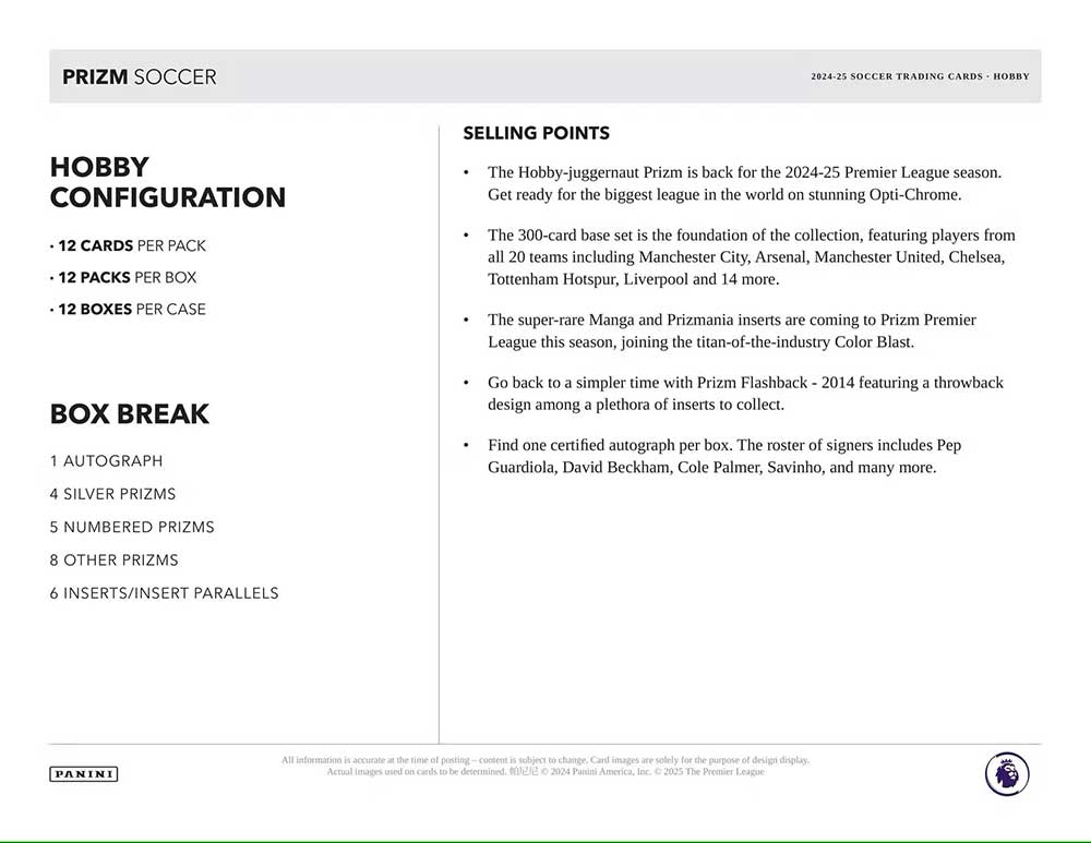 ★パニーニ社から2024-25シーズンのイングランド・プレミアリーグのサッカートレーディングカード『2024-25 Panini Prizm Premier League Soccer』のHobby版が発売されます!