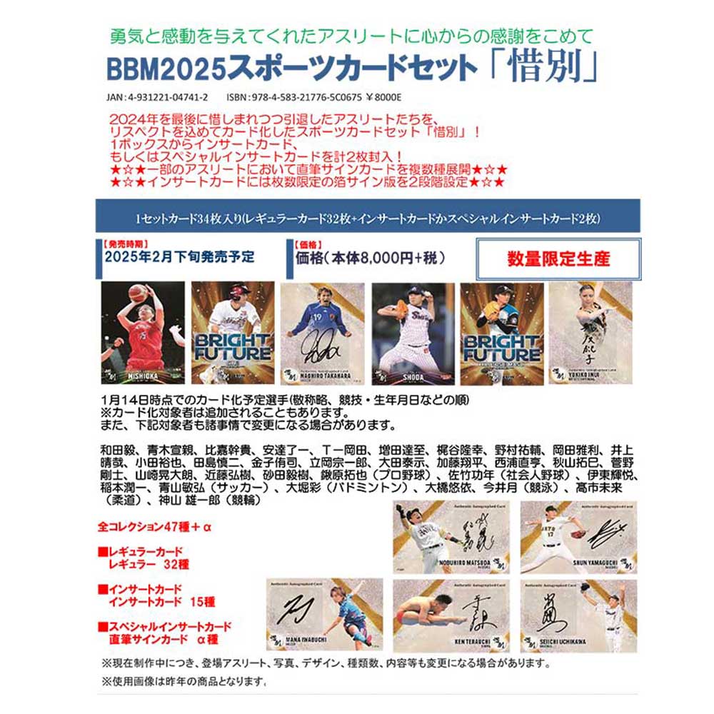 BBM 2025 スポーツカードセット 「惜別」1セット単位 2/22発売!送料無料!