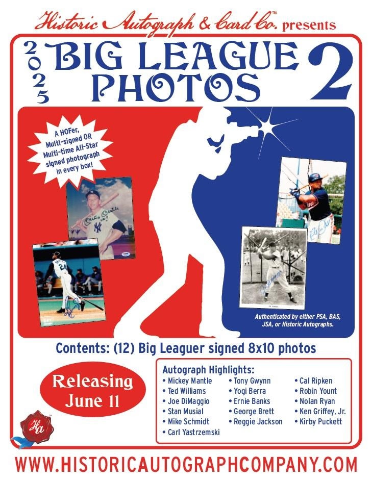 ★Historic Autographs社(HA)から、1ボックスにメジャーリーガーの直筆サイン入り8x10サイズフォトが12枚封入された『2025 Historic Autographs Big League Photo Series 2』が登場!