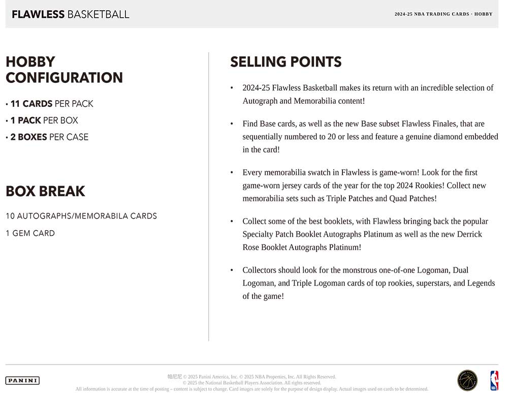 NBA 2024-25 Panini Flawless Basketball Hobby Box 9/27発売