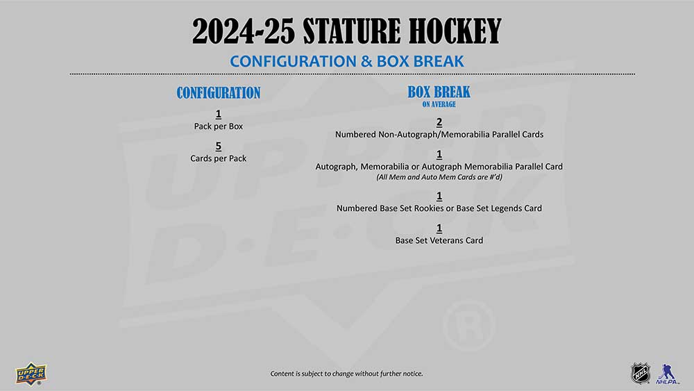 ★アッパーデック社の人気アイスホッケーカード『NHL 2024-25 UD Stature Hockey』のHobby版が発売されます!