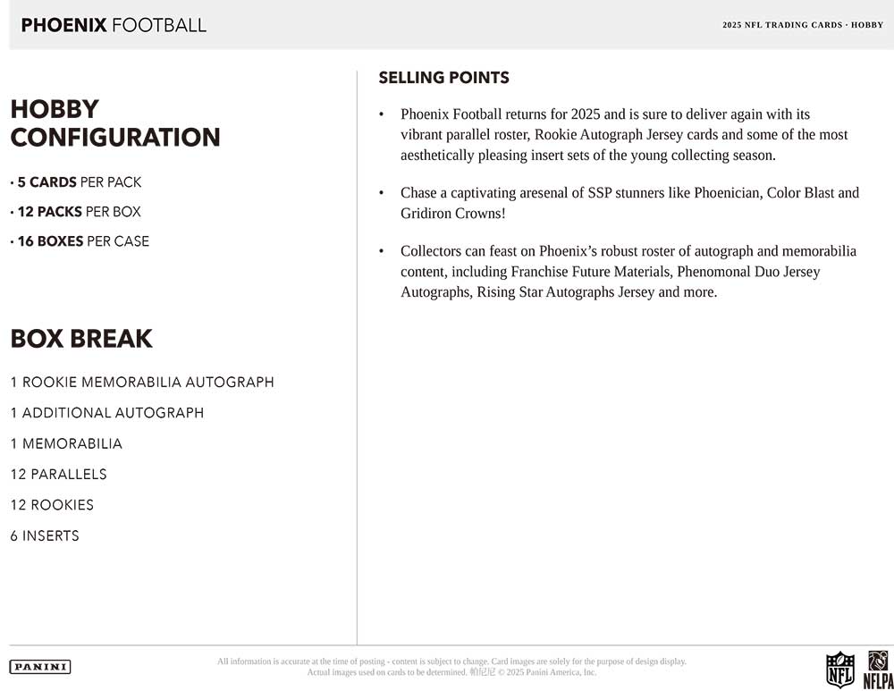 NFL 2025 Panini Phoenix Football Hobby Box 11/13入荷