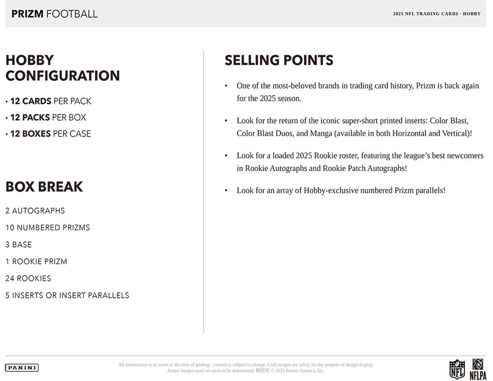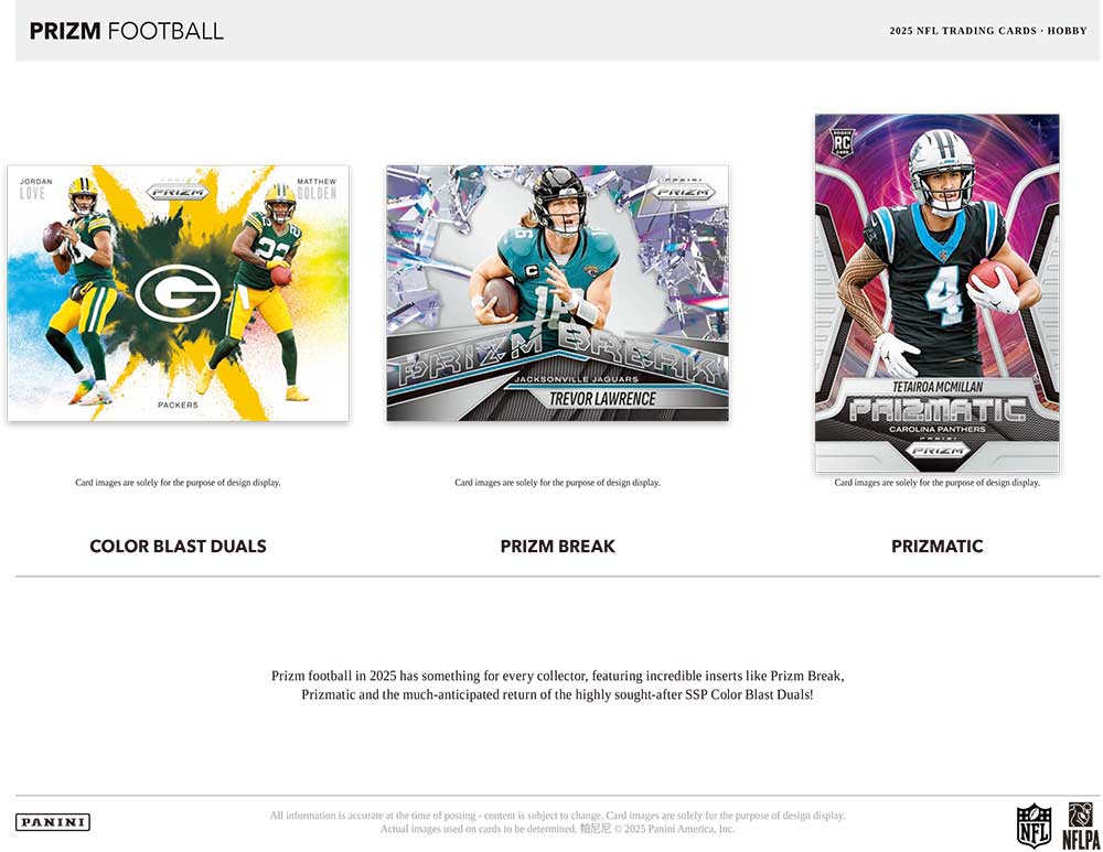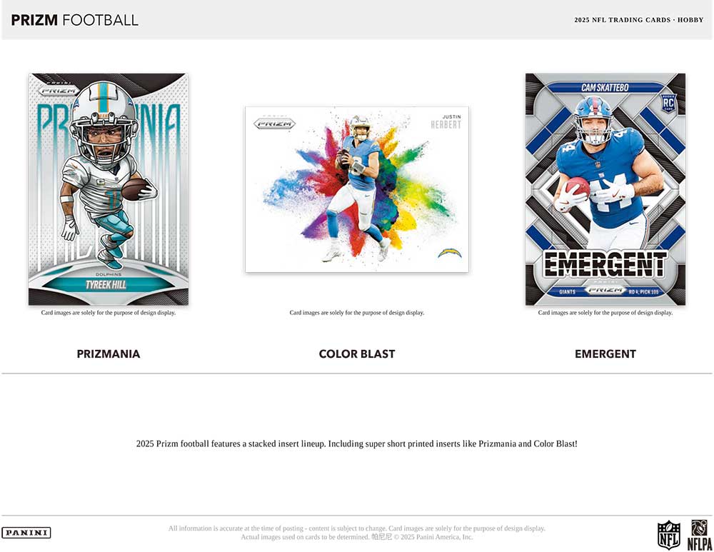 ★キラキラ光るプリズムパラレルで人気のパニーニ社のアメフトカード『NFL 2025 Panini Prizm Football』のHobby版が発売されます!