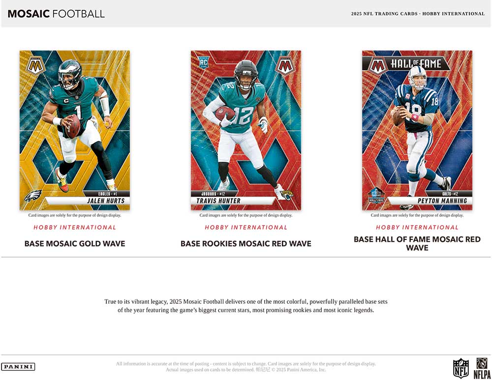 ★キラキラ美しく輝くモザイクオプティクローム加工でNBAでも人気のパニーニ社トレーディングカードシリーズのNFL版『NFL 2025 Panini Mosaic Football』のHobby International版が発売されます!