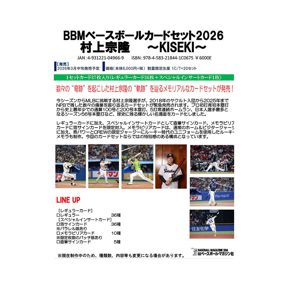 BBM ベースボールカードセット 2026 村上宗隆~KISEKI~ Box 3/16発売