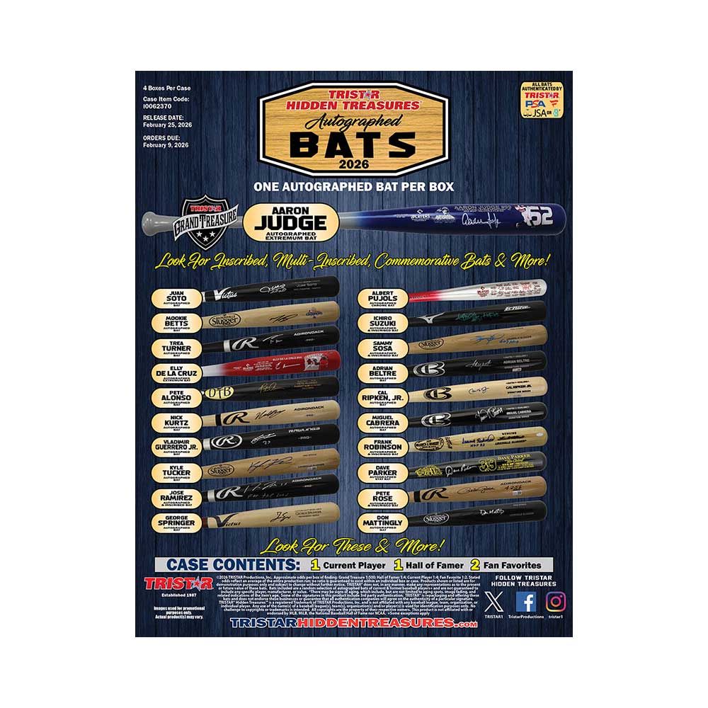★トライスター社の1ボックスに直筆サインバットが1本封入された人気シリーズ『2026 Tristar Hidden Treasures Autographed Bats』が発売されます!