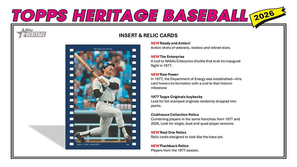★2026シーズンのHeritage Baseballは、新たなベースパラレルやインサート、ベースバリエーション、ベースサブセット、直筆サイン、メモラビリアカードなどが封入!